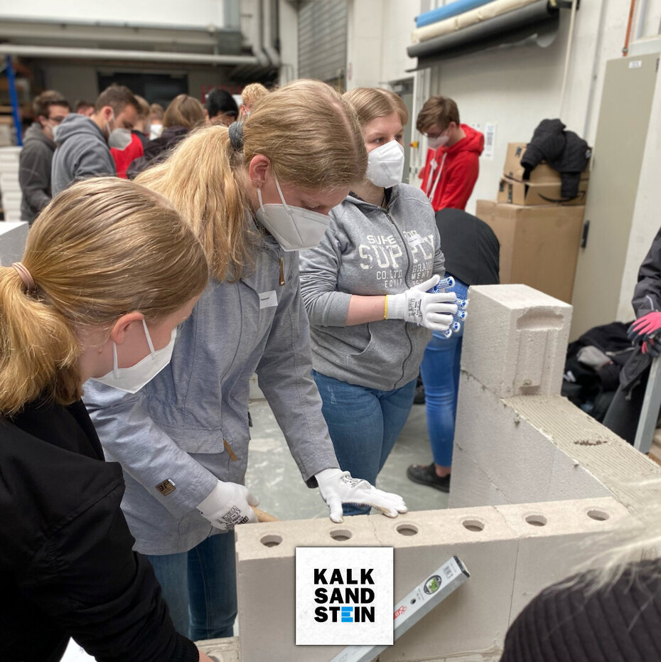 Übrigens: In Abstimmung mit dem entsprechenden Kalksandsteinwerk ist auch eine kleine Demonstration zur Verarbeitung von Kalksandsteinen möglich.